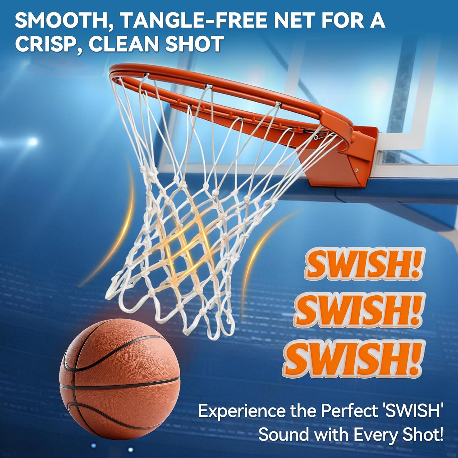 Upgrade your basketball experience with our MegaNets Professional Basketball Net Replacement, built for strength, style, and performance.Each net is made from high-quality nylon fibers (15 lines × 4 wisps = 60 lines) that provide exceptional toughness and elasticity.The 12-loop design fits all standard 18-inch rims, while the anti-whip construction prevents tangling and keeps your game flowing smoothly.Whether you’re playing on a home driveway, school court, or outdoor park, this all-weather basketball net withstands harsh conditions like UV rays, rain, and snow without fraying or fading.It installs in just minutes and comes packaged in a vibrant color gift box, making it an excellent present for basketball enthusiasts, athletes, and families.Choose professional quality that lasts — enjoy the perfect swish with every shot.